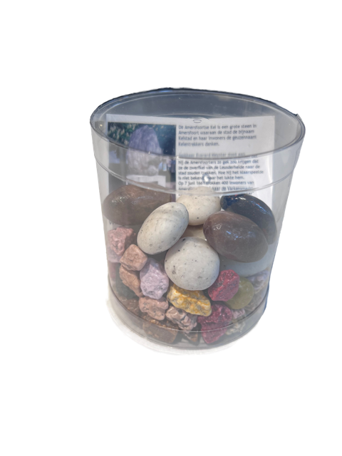 De originele Amersfoortse Keitjes, leuk verpakt met een inhoud van 160 gram. Voorzien van een kaartje met het ontstaan van de Keientrekkers.In onze winkels zijn de keitjes ook per 100 gram in een zakje te koop.Verpakking kan Variëren.